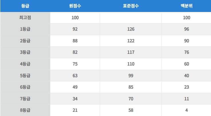 ※ 역대 연도별 모든 과목의 수능 등급컷 점수를 확인하시려면 아래 링크 참고해 주시길 바랍니다.