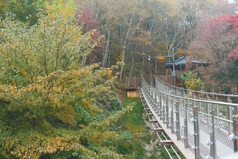 아파트에 둘러싸인 공원으로 접근성이 좋아 광명 시민들이 많이 찾는 곳입니다. 계단으로 올라가는 산책로를 따라가다 보면 아름다운 단풍을 즐길 수 있으며 도덕산의 명소인 인공폭포와 출렁다리도 볼 수 있습니다. 산책 후에는 유명한 광명전통시장에 들러보는 것도 좋겠습니다.