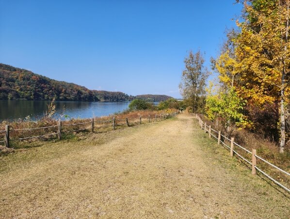 경기도 여주시에 있는 강천섬은 남한강 줄기에 있는 섬으로 강변을 따라 산책길이 잘 정비되어 있는 곳입니다. 은행나무가 줄지어 선 산책길은 가을이 되면 황금빛으로 물들어 가을의 정취를 느낄 수 있습니다.