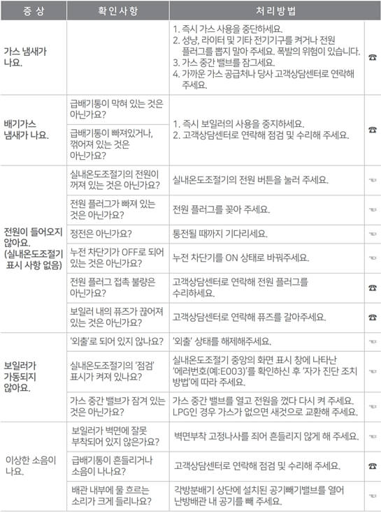 ✅ AS 신청 전에 먼저 아래 증상별 확인사항과 처리방법을 확인하시면 의외로 간단하게 해결할 수 있는 문제이거나 서비스 신청을 위한 시간 낭비를 막을 수 있으니 잠시 읽어보시길 바랍니다. 사진을 누르면 크게 보실 수 있습니다.