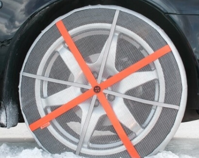 패브릭 직물로 만든 커버형태의 체인으로 바퀴를 감싸는 방식입니다. 눈이 많이 오는 날 1회성이나 단거리 주행용으로 사용할 수 있습니다. 최근에는 다중 구조로 내구성이 향상된 제품들도 있고 가격도 저렴한 편이기 때문에 제품별로 비교하셔서 비상용으로 구비해 놓고 사용하시면 될 것 같습니다. 한계속도는 50km/h 정도입니다.