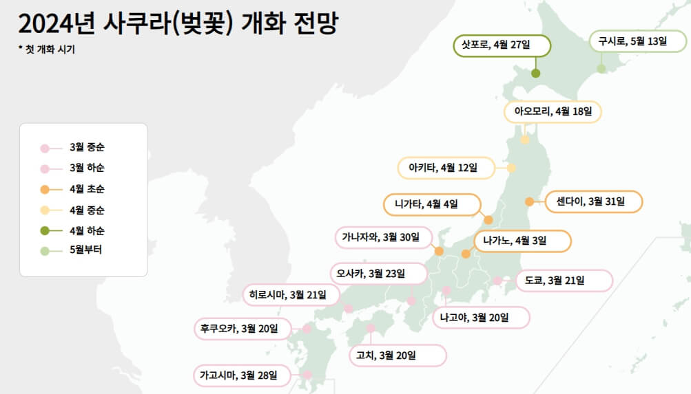 2024년 벚꽃 개화시기 및 만개시기