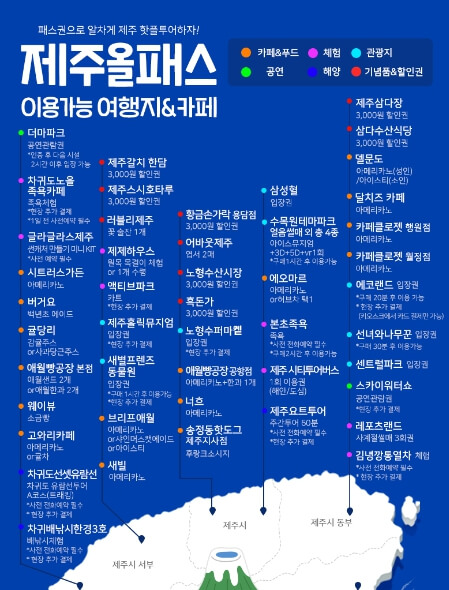 놀이 공원을 가면 시간 안에 놀이기구를 무제한으로 이용가능한 자유이용권이 있죠. 여행지에서도 정해진 시간 (24시간 단위) 안에 관광지를 무료 또는 할인된 가격으로 방문/이용할 수 있는 투어패스권이 있습니다. 오늘은 제주 여행 자유이용권인 제주 올패스의 가격과 이용방법, 이용 시 주의사항 등을 소개해 드리겠습니다.