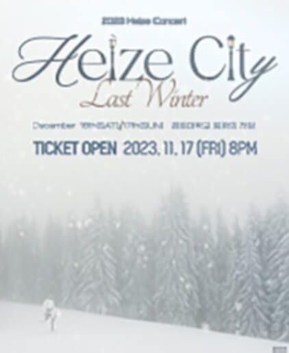 | 헤이즈 콘서트 | 2023/12/16 (토) ~ 12/17 (일) | 경희대학교 평화의 전당 | Title: 2023 Heize Concert - Heize City : Last Winter ▶ 상세정보/예매처 바로가기 |