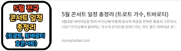 디너쇼 외에도 5월에 예정된 트로트 콘서트, 트바로티 (김호중) 콘서트 일정이 궁금하신 분들은 아래 글을 참고해 주시기 바랍니다.