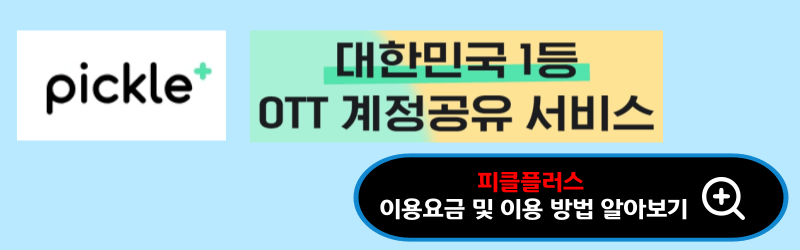 또다른 인기 OTT 공유 플랫폼 피클플러스에 대해 궁금하시면 아래 링크의 글을 확인해 주시기 바랍니다.